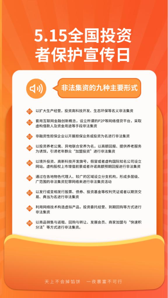 为了更好地保护投资者的权益,让投资者更加理性、科学地进行投资,加强投资市场的规范和透明度。中国证监会将每年5月15日定为“全国投资者保护宣传日”,以进一步倡导理性投资文化,凝聚市场各方共识,形成人人关心、关爱、关注中小投资者合法权益的良好氛围,让投资者保护理念深入人心。
